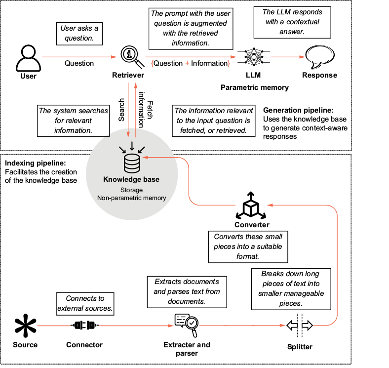 More technically: After applying RAG, the LLM has 2 sources of memory: